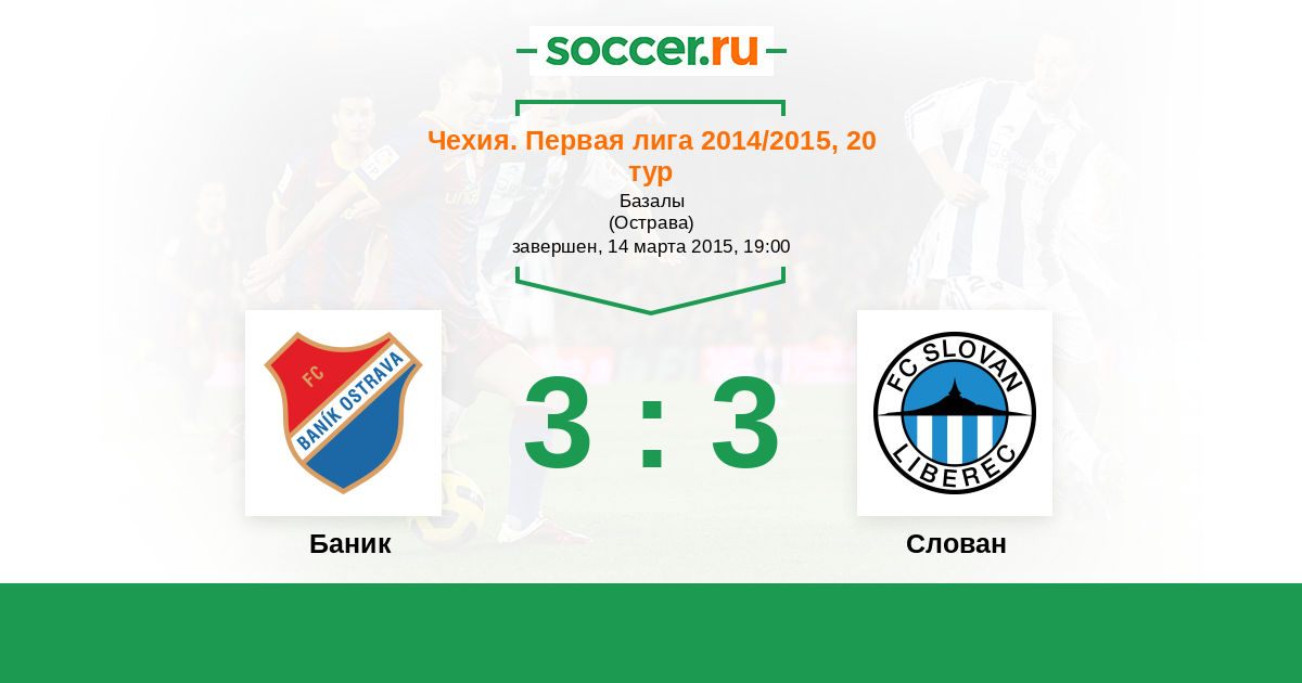 Чехия. Первая Лига 05.04.2014 Слован Логотип футбольный клуб Слован (Либерец) 3:2 Логотип футбольный клуб Баник (Острава) Баник