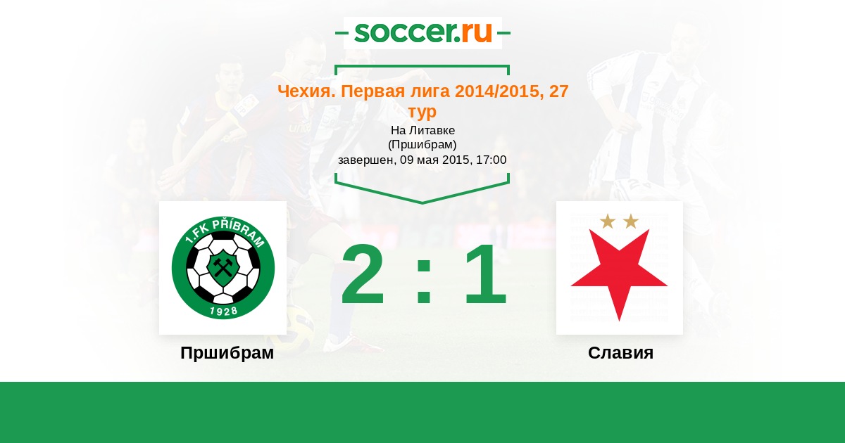 Чехия. Первая Лига 02.05.2014 Славия Логотип футбольный клуб Славия (Прага) 3:0 Логотип футбольный клуб Пршибрам Пршибрам