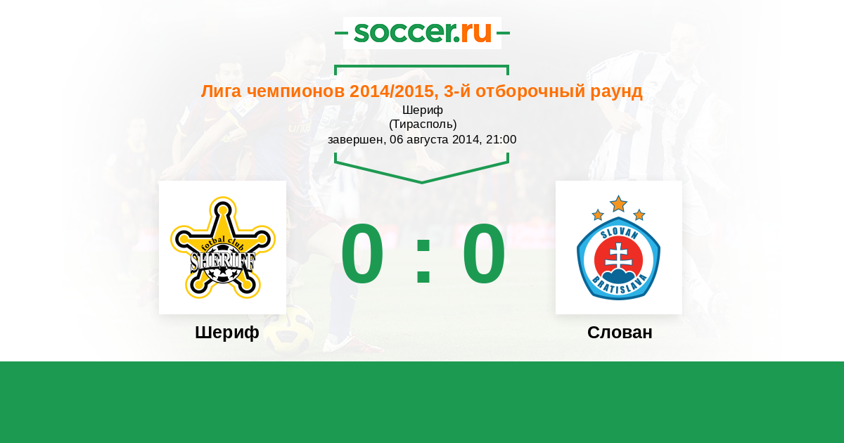 Протокол матча Шериф против Слован