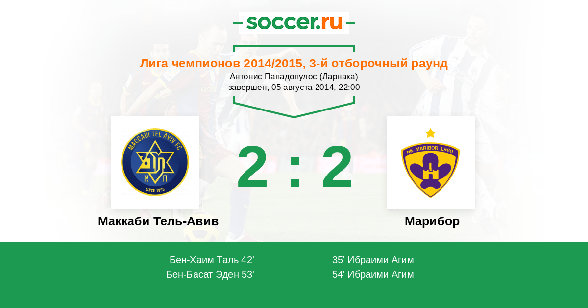 Протокол матча Маккаби Тель-Авив против Марибор
