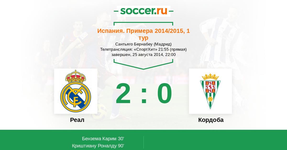 Протокол матча Реал против Кордоба