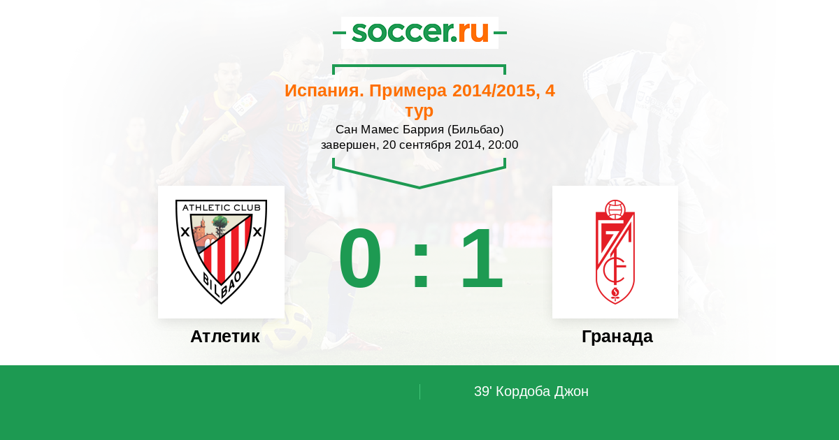 Протокол матча Атлетик против Гранада