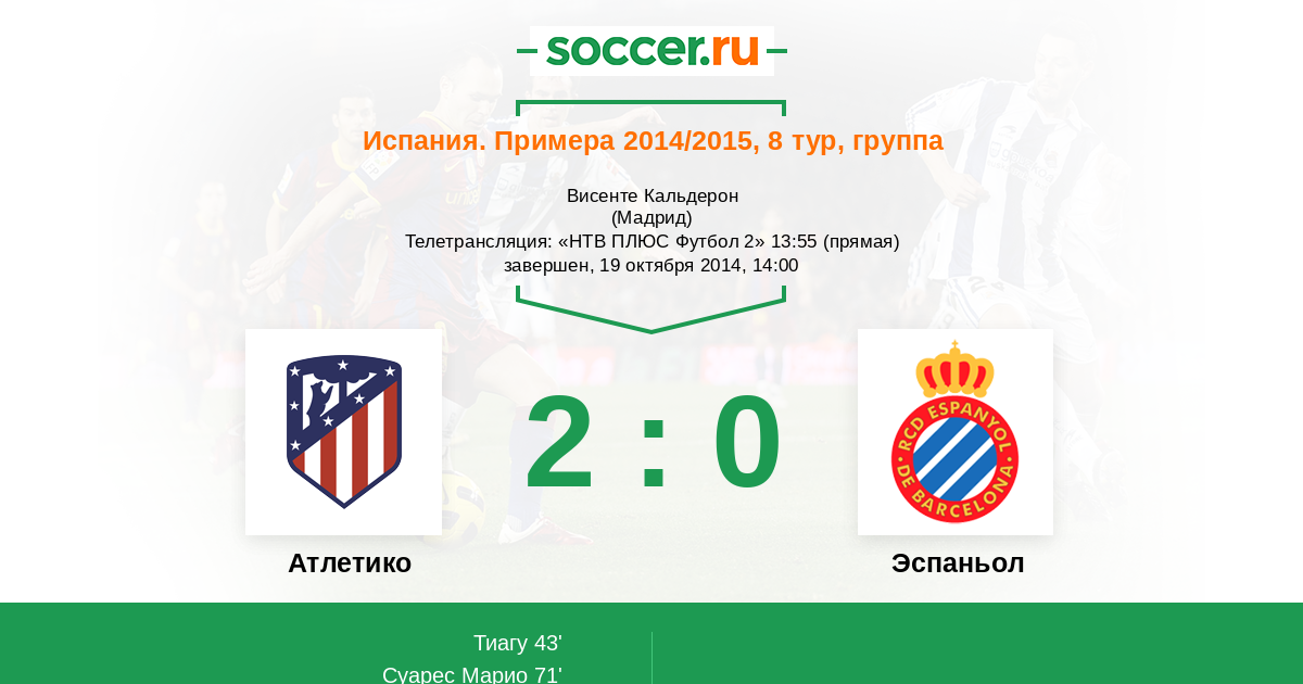 Протокол матча Атлетико против Эспаньол