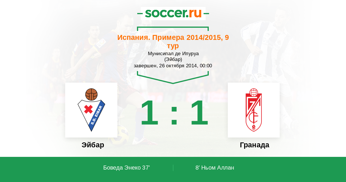 Протокол матча Эйбар против Гранада