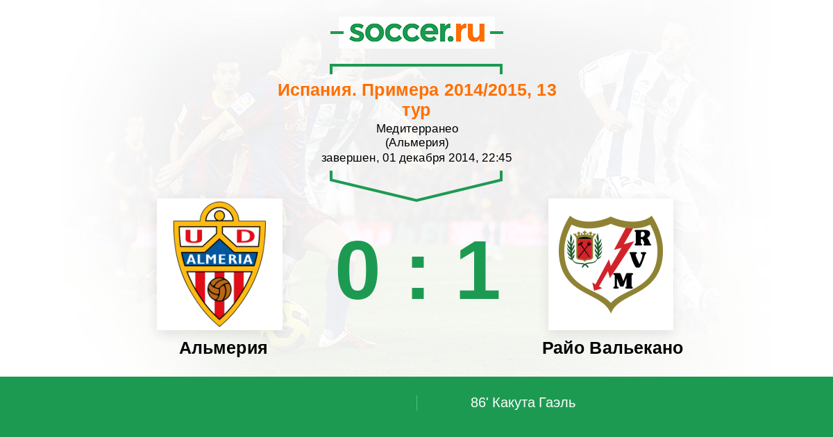 Протокол матча Альмерия против Райо Вальекано