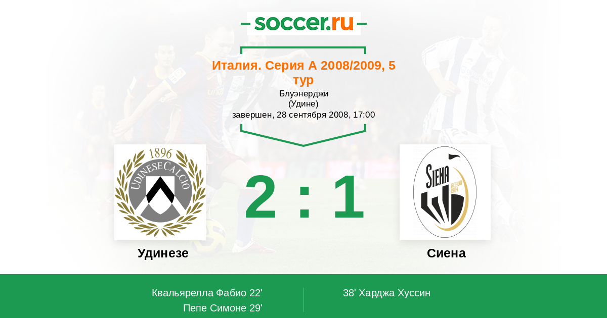 Протокол матча Удинезе против Сиена