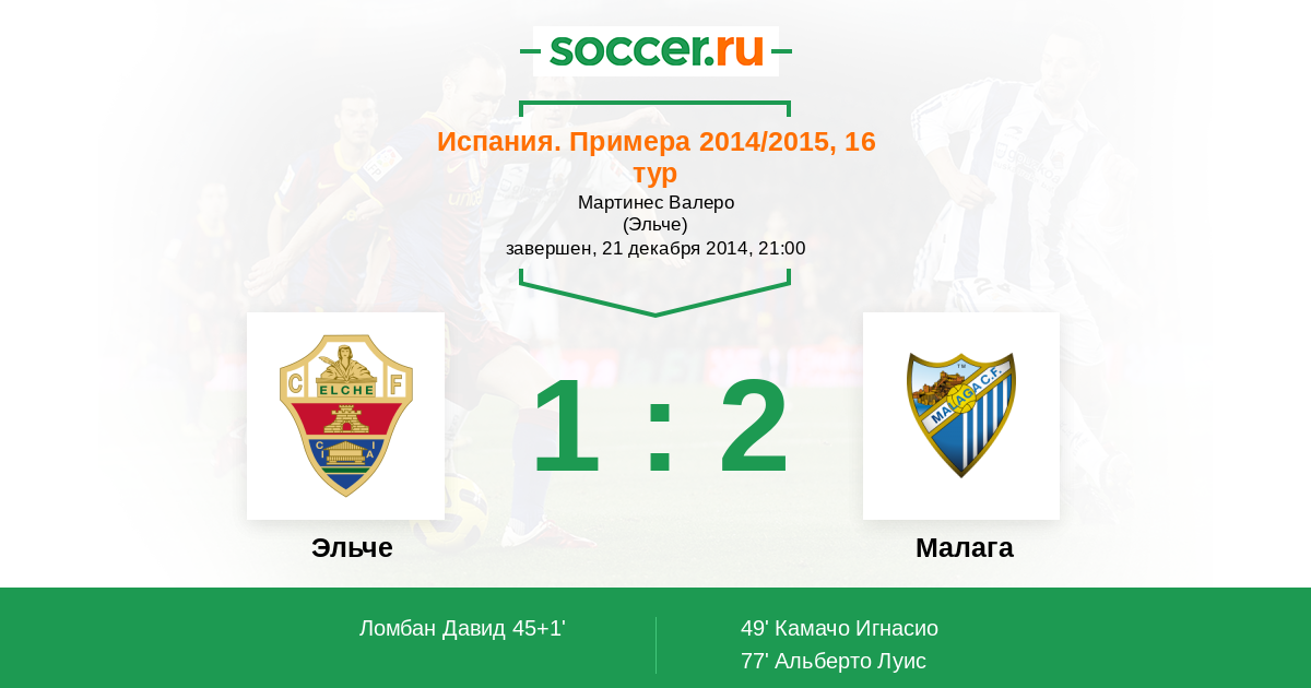 Протокол матча Эльче против Малага