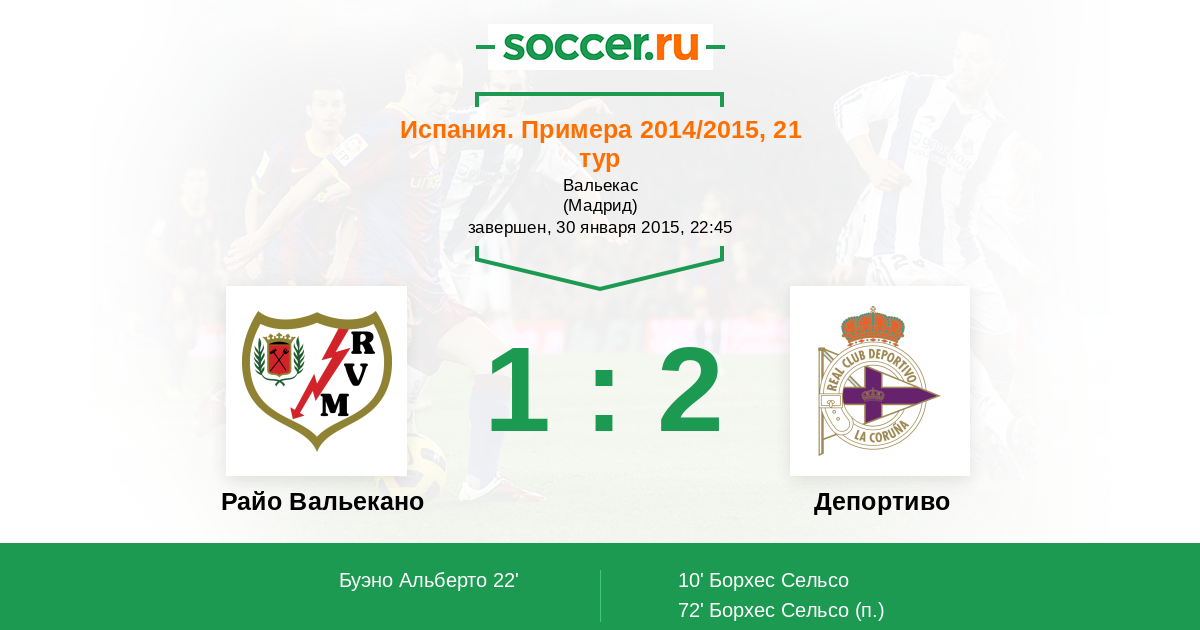 Протокол матча Райо Вальекано против Депортиво