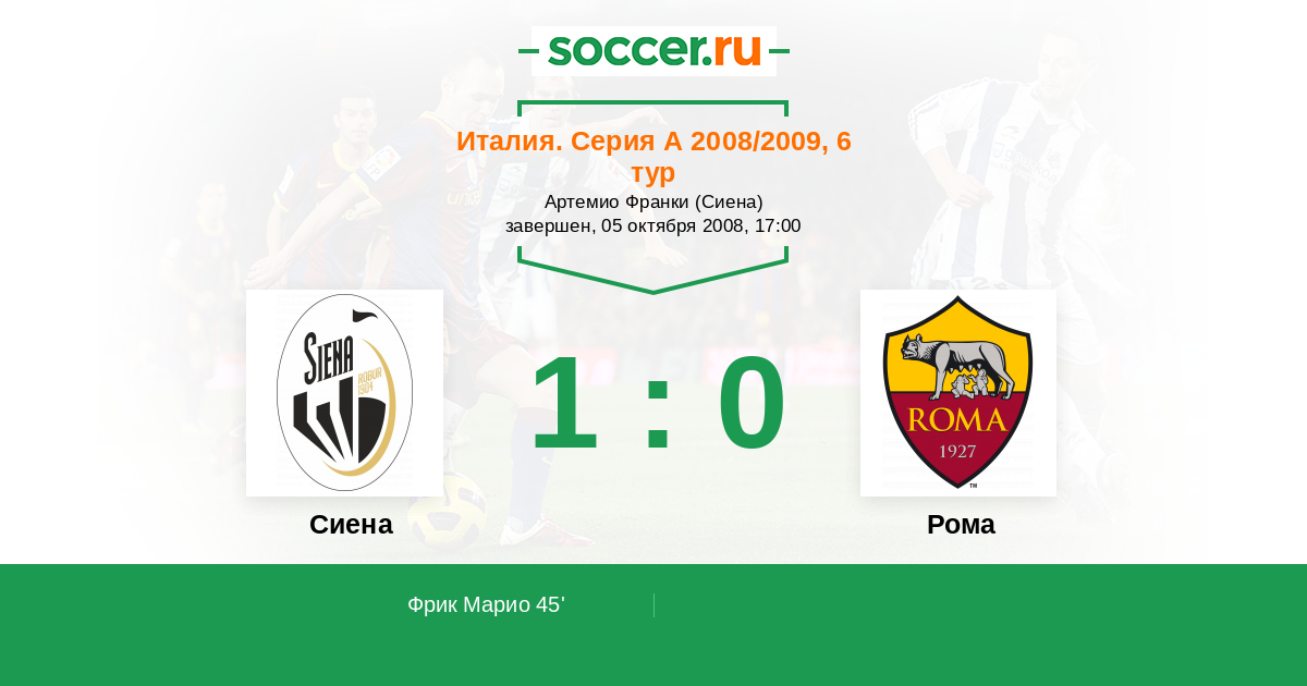 Протокол матча Сиена против Рома
