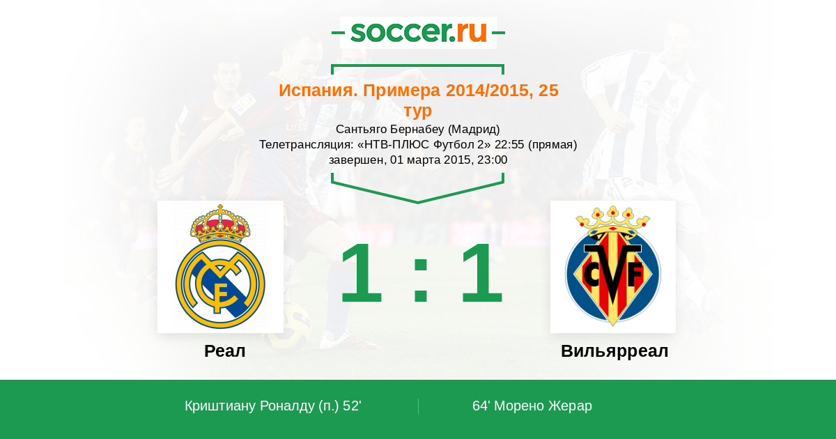 Протокол матча Реал против Вильярреал