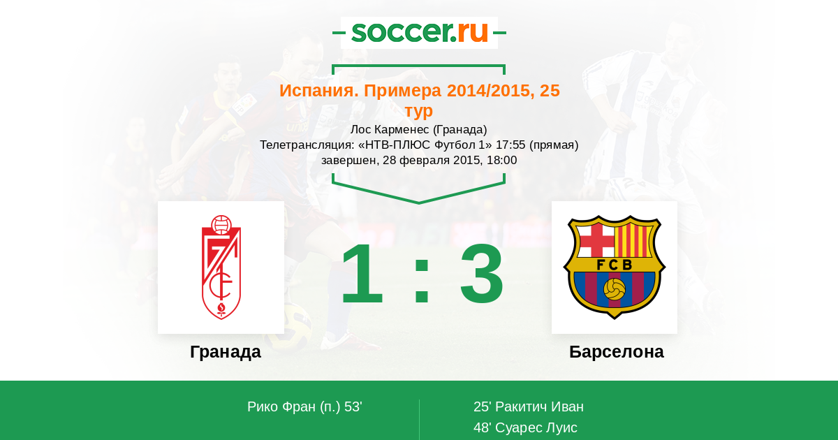 48' (0:2) Суарес Луис (9) (Ракитич Иван (4))