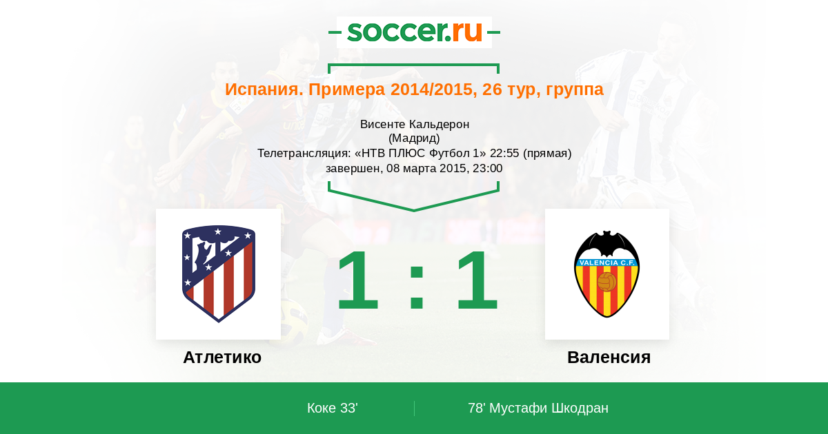 Протокол матча Атлетико против Валенсия