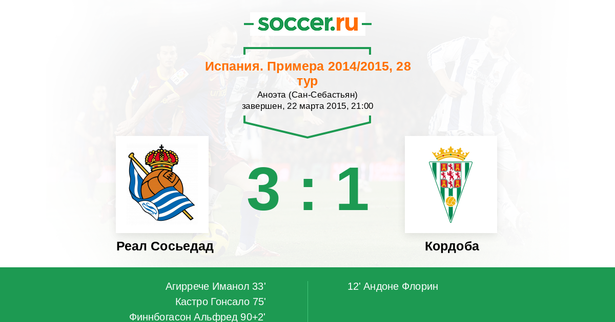 Протокол матча Реал Сосьедад против Кордоба