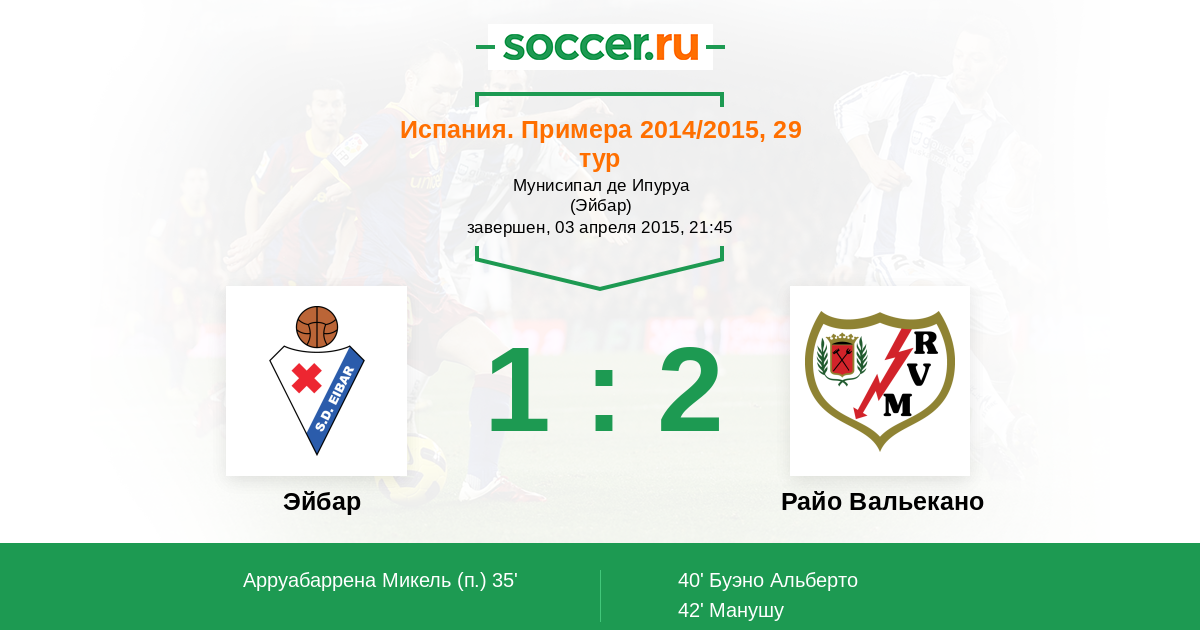 Протокол матча Эйбар против Райо Вальекано
