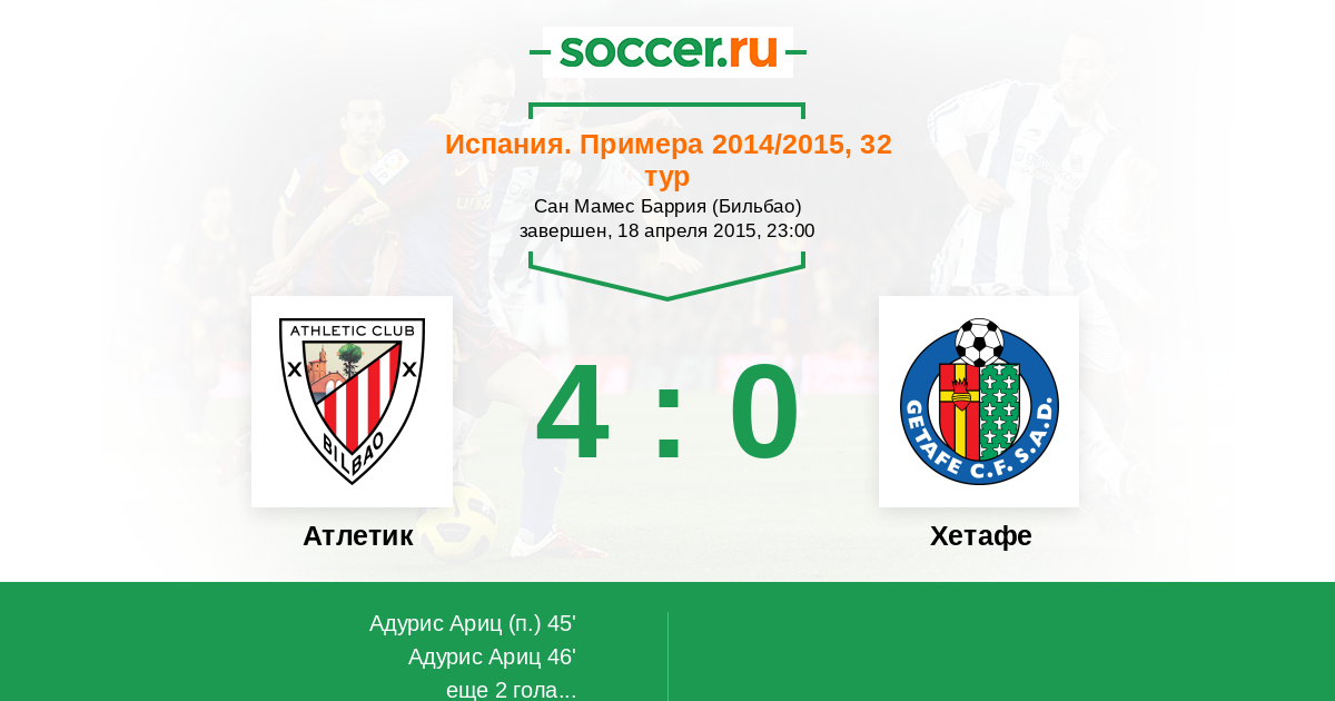 Протокол матча Атлетик против Хетафе