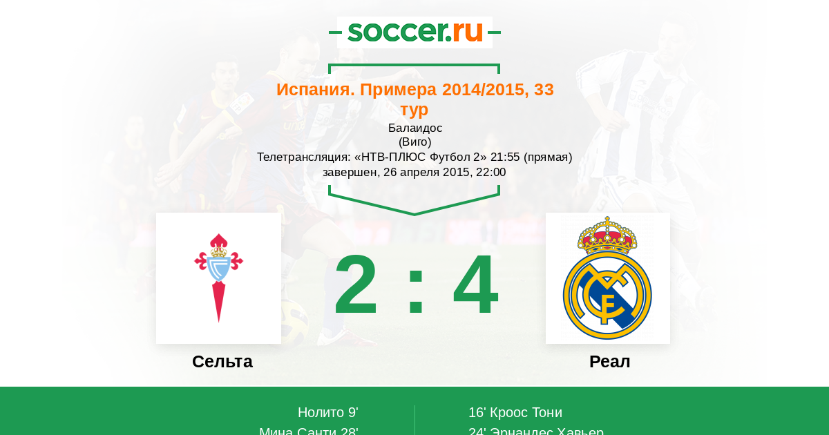 Протокол матча Сельта против Реал