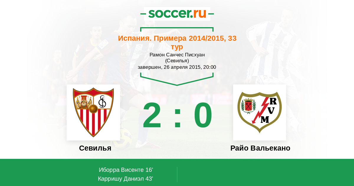 Протокол матча Севилья против Райо Вальекано