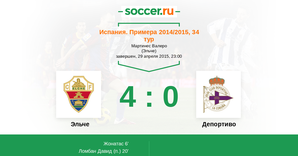 Протокол матча Эльче против Депортиво