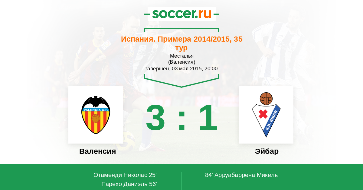 Протокол матча Валенсия против Эйбар