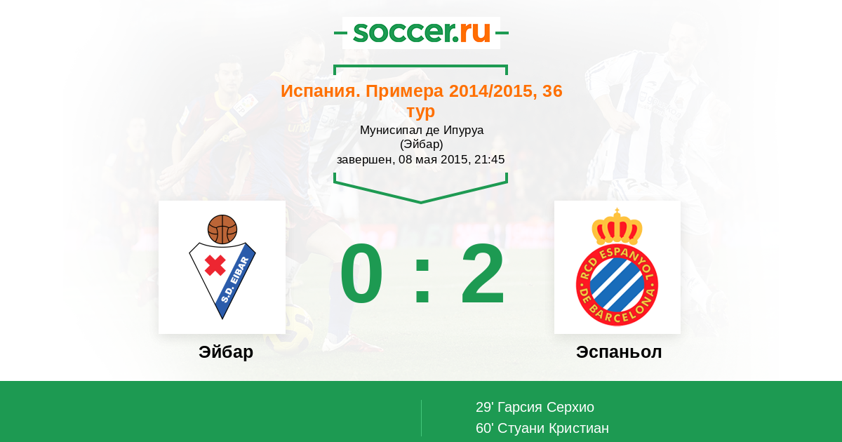 Протокол матча Эйбар против Эспаньол