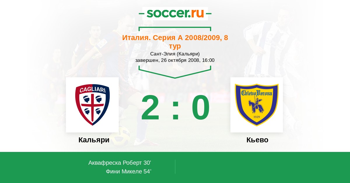 Протокол матча Кальяри против Кьево