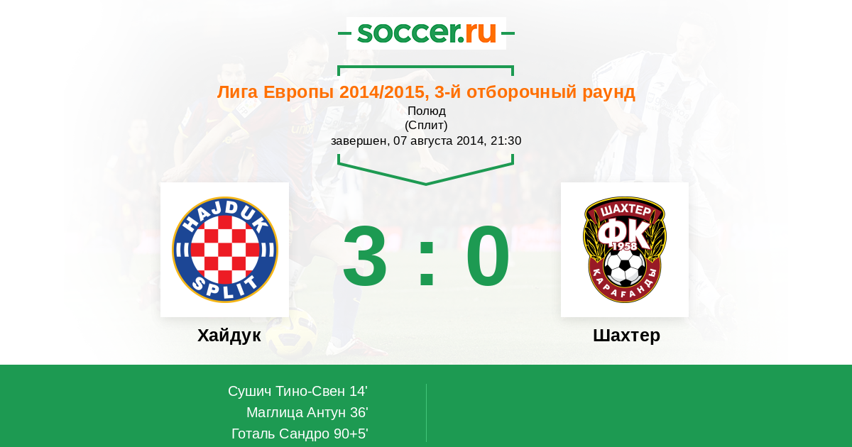 Протокол матча Хайдук против Шахтер