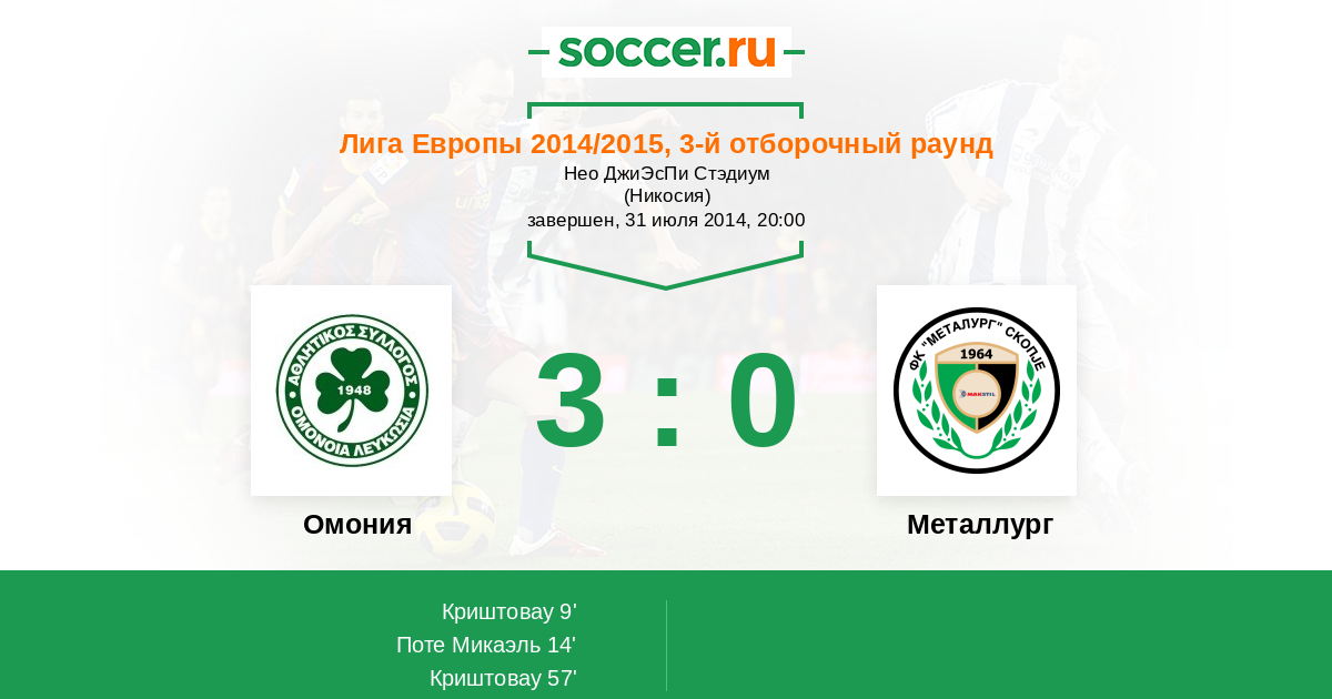 Протокол матча Омония против Металлург