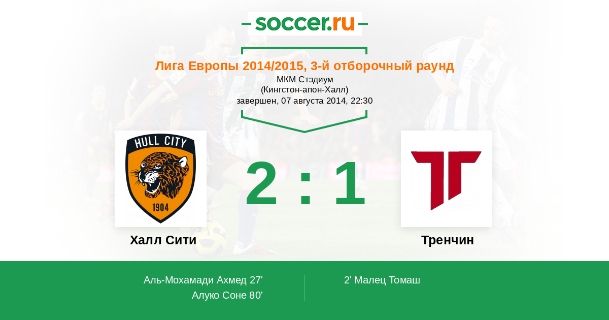 Протокол матча Халл Сити против Тренчин