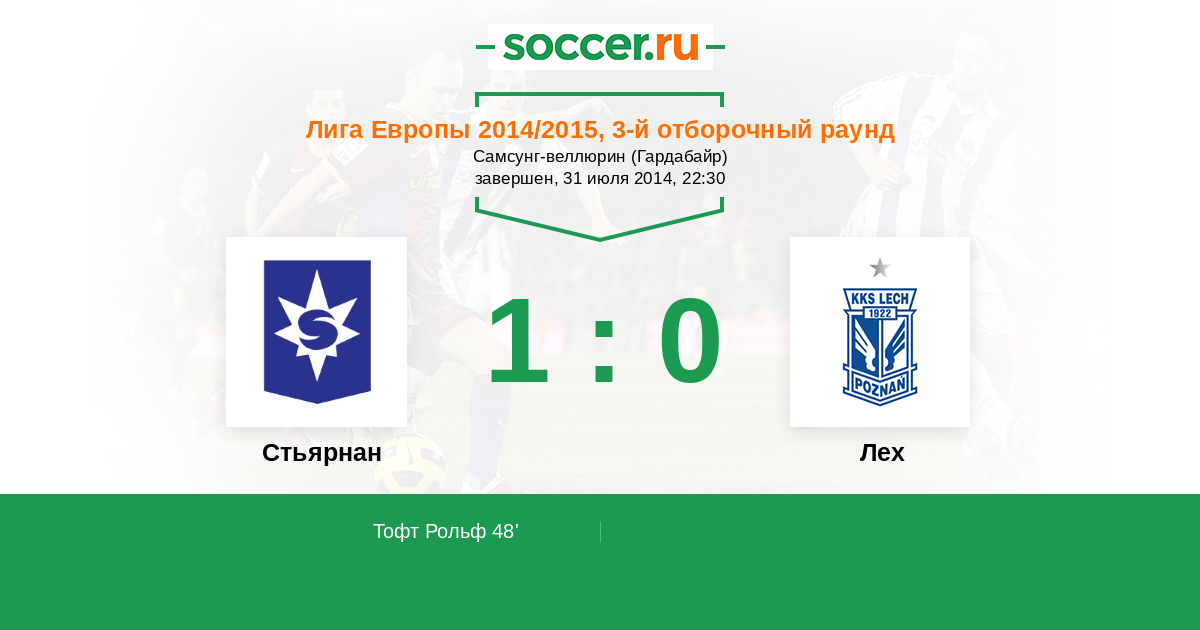 Протокол матча Стьярнан против Лех