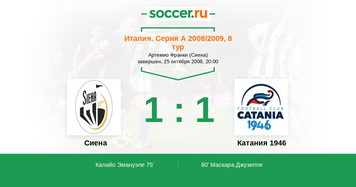 Протокол матча Сиена против Катания 1946