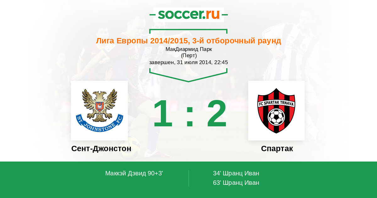 Протокол матча Сент-Джонстон против Спартак
