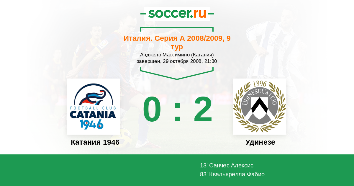 Протокол матча Катания 1946 против Удинезе