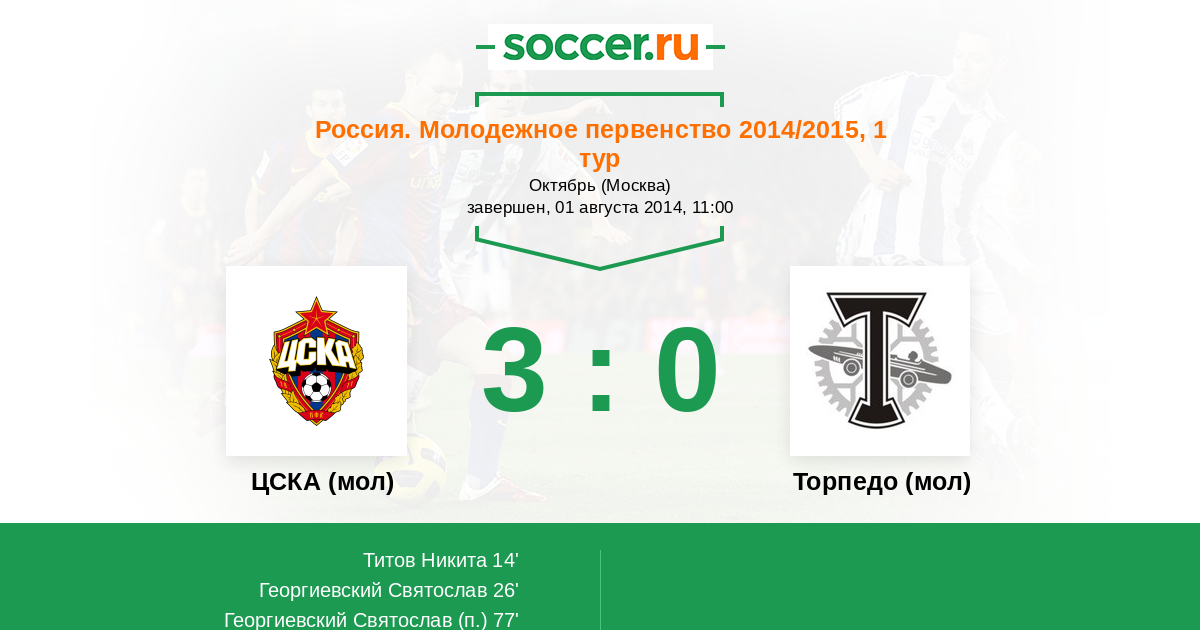 Протокол матча ЦСКА (мол) против Торпедо (мол)