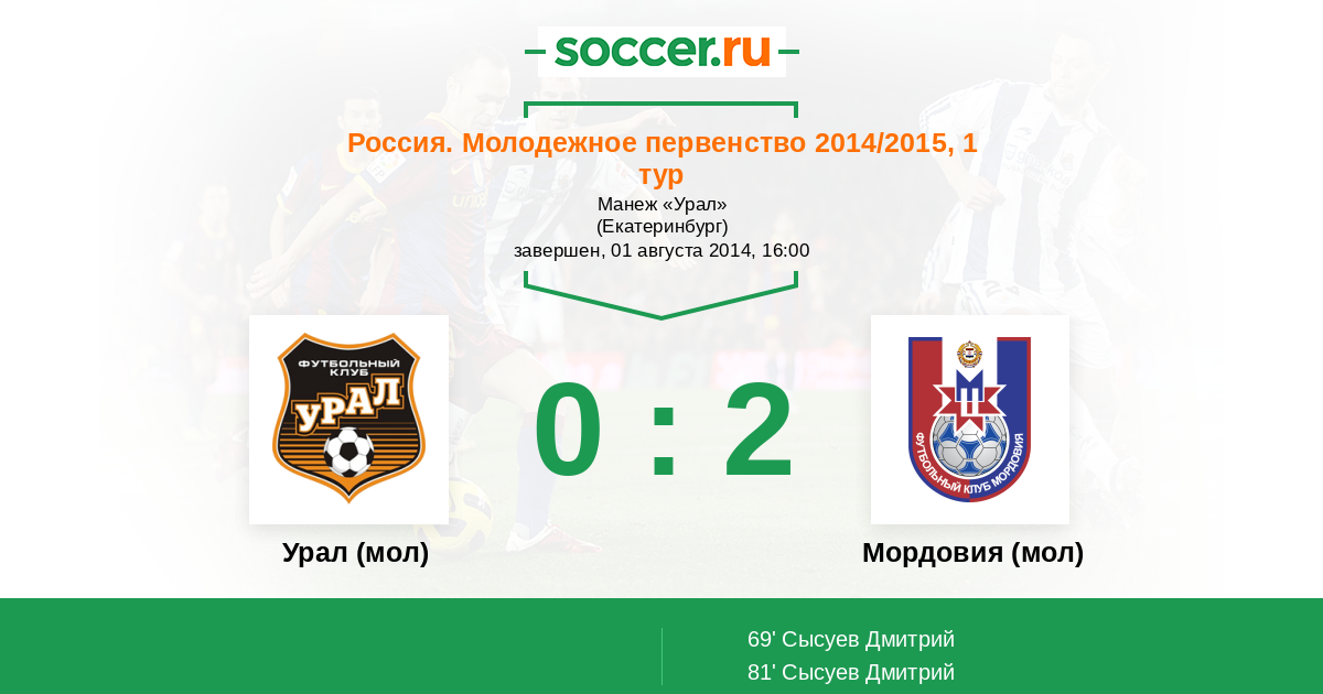 Протокол матча Урал (мол) против Мордовия (мол)