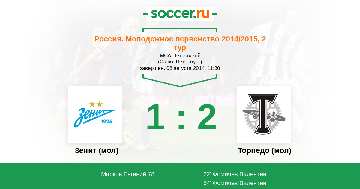 Протокол матча Зенит (мол) против Торпедо (мол)