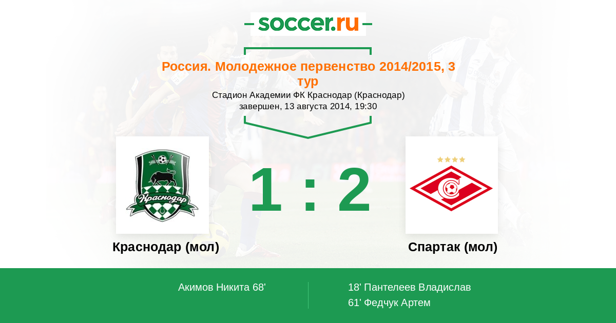 Протокол матча Краснодар (мол) против Спартак (мол)