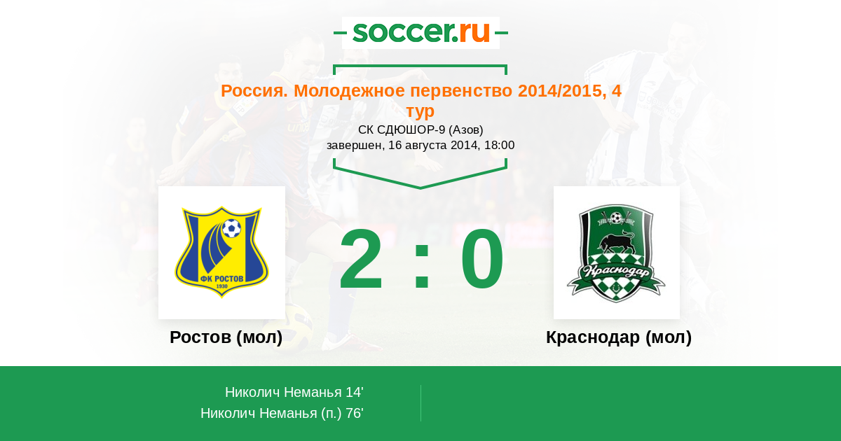 Протокол матча Ростов (мол) против Краснодар (мол)