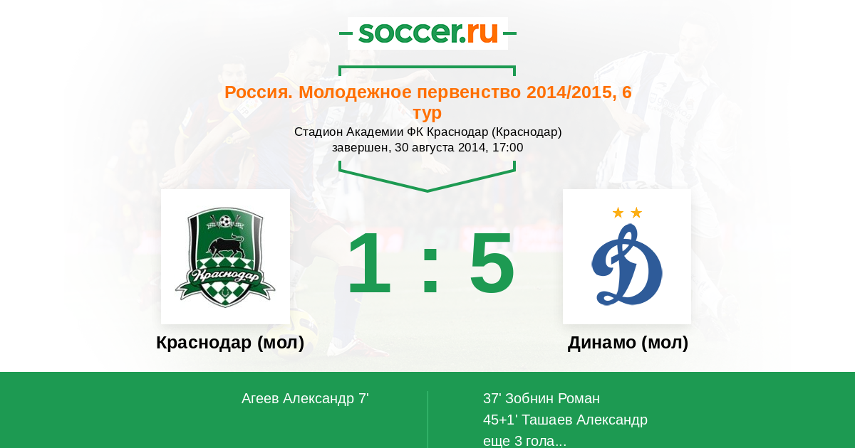 Протокол матча Краснодар (мол) против Динамо (мол)