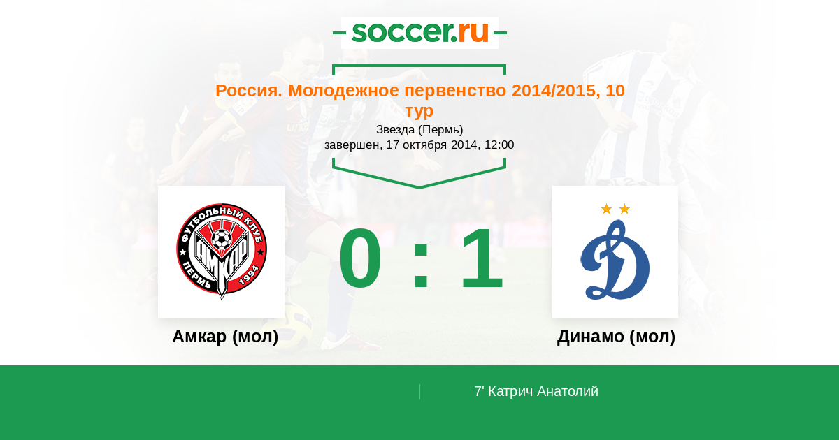 Протокол матча Амкар (мол) против Динамо (мол)