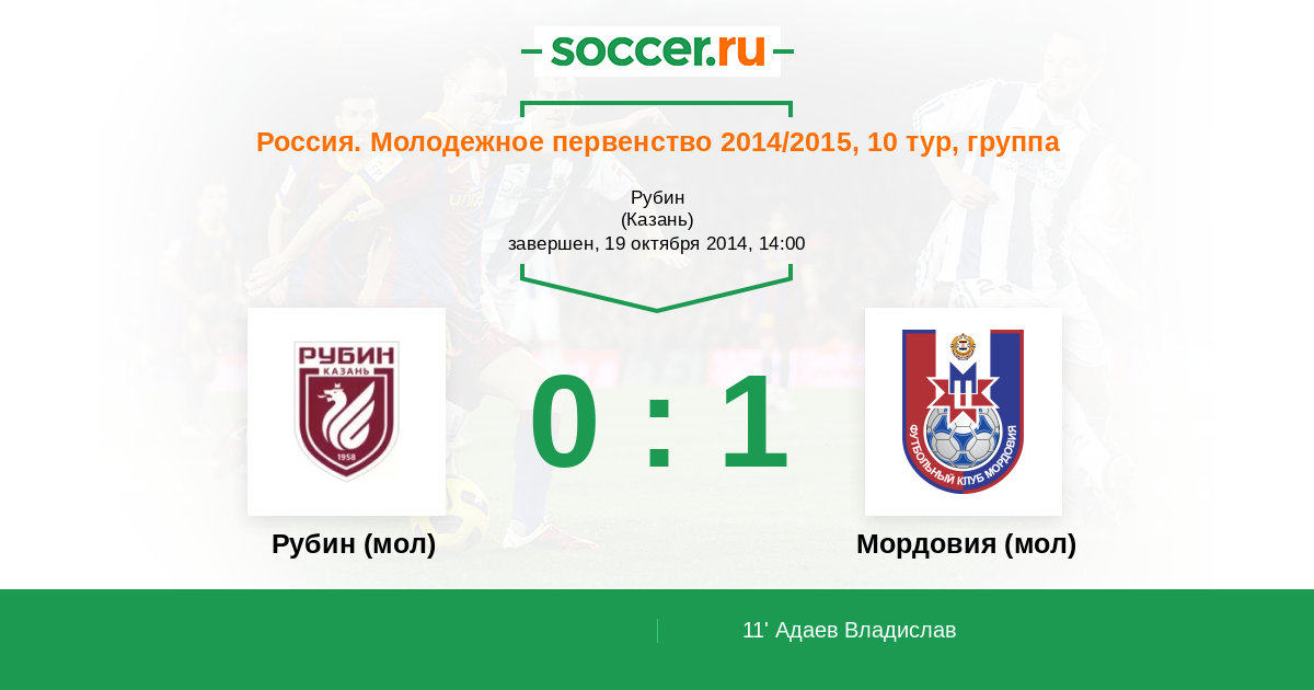 Протокол матча Рубин (мол) против Мордовия (мол)