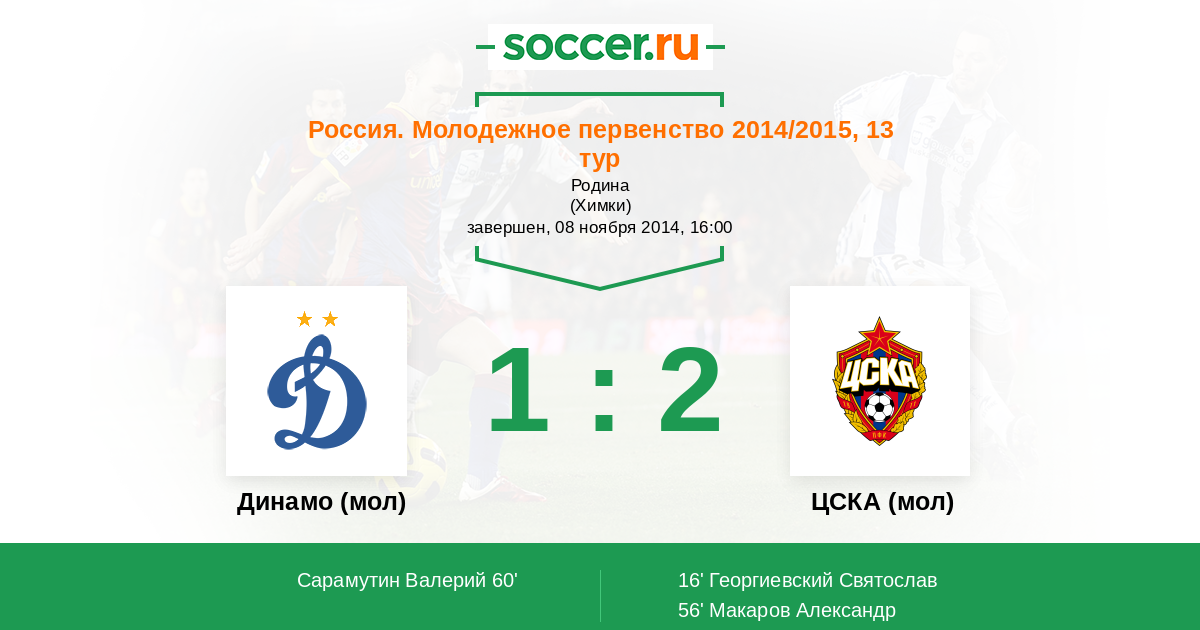 Протокол матча Динамо (мол) против ЦСКА (мол)