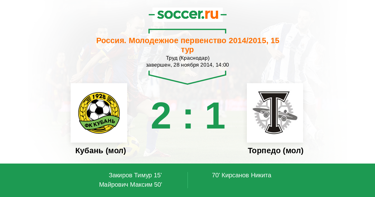 Протокол матча Кубань (мол) против Торпедо (мол)