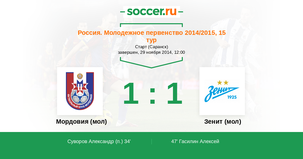 Протокол матча Мордовия (мол) против Зенит (мол)