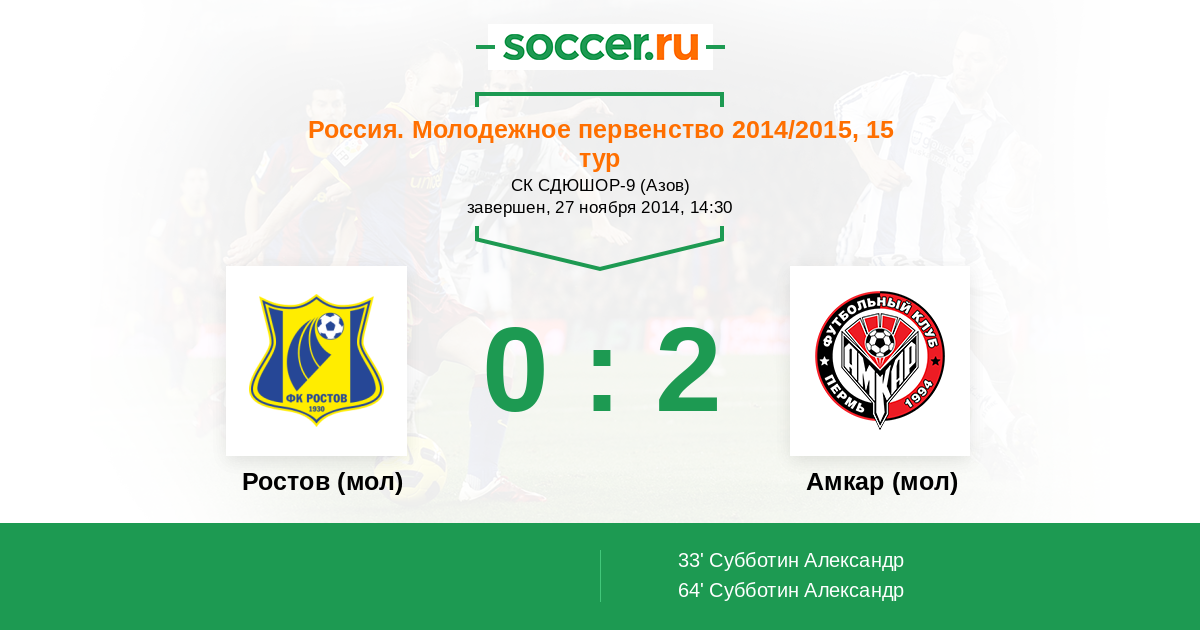 33' (0:1) Субботин Александр (99)