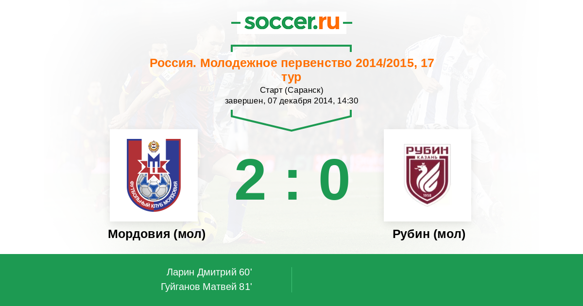 Протокол матча Мордовия (мол) против Рубин (мол)