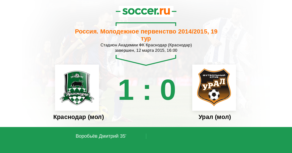35' (1:0) Воробьёв Дмитрий (78)