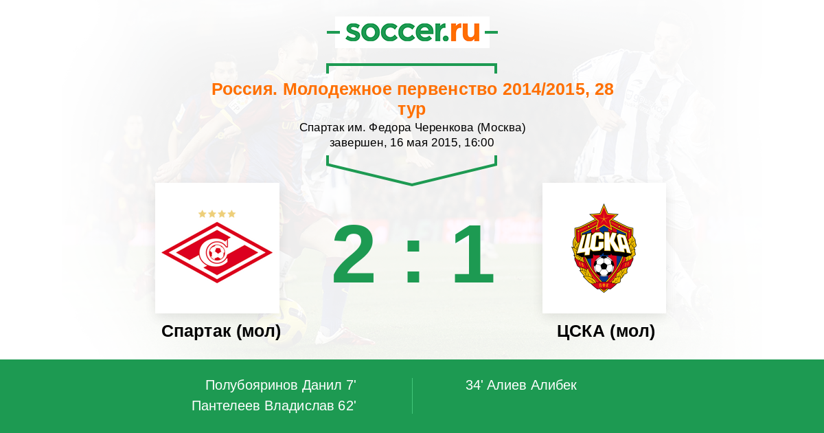 Протокол матча Спартак (мол) против ЦСКА (мол)