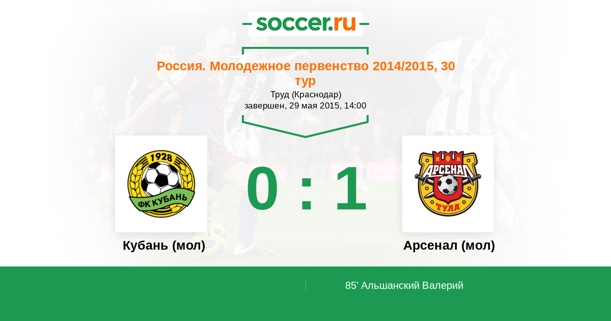Протокол матча Кубань (мол) против Арсенал (мол)