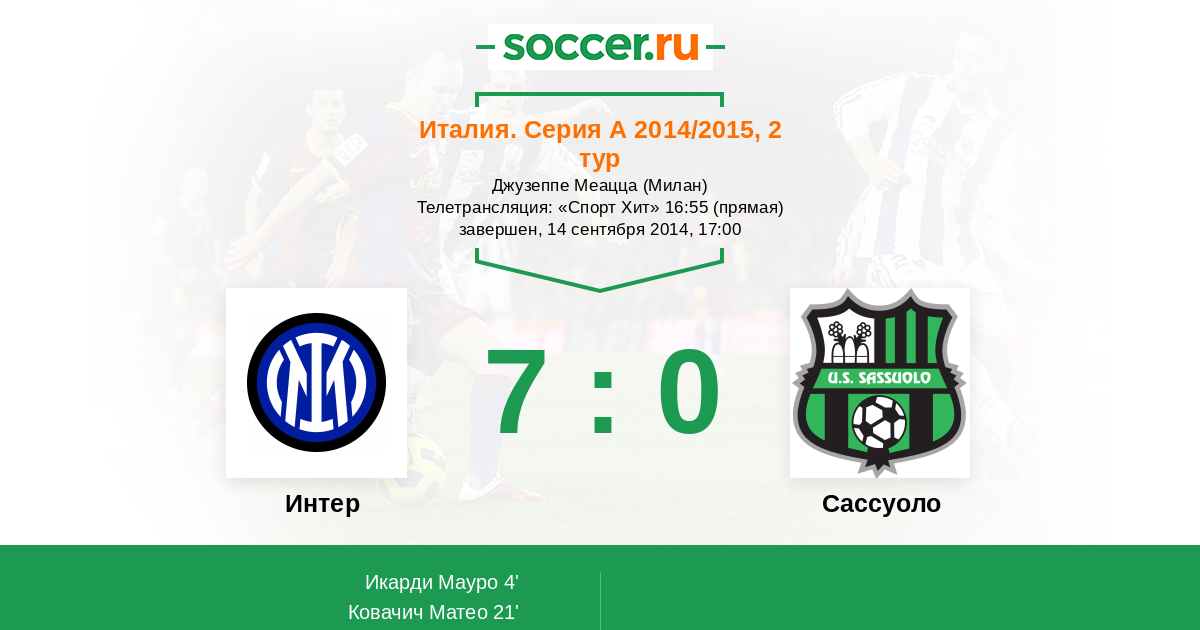 30' (3:0) Икарди Мауро (9) (Эрнанес (88))