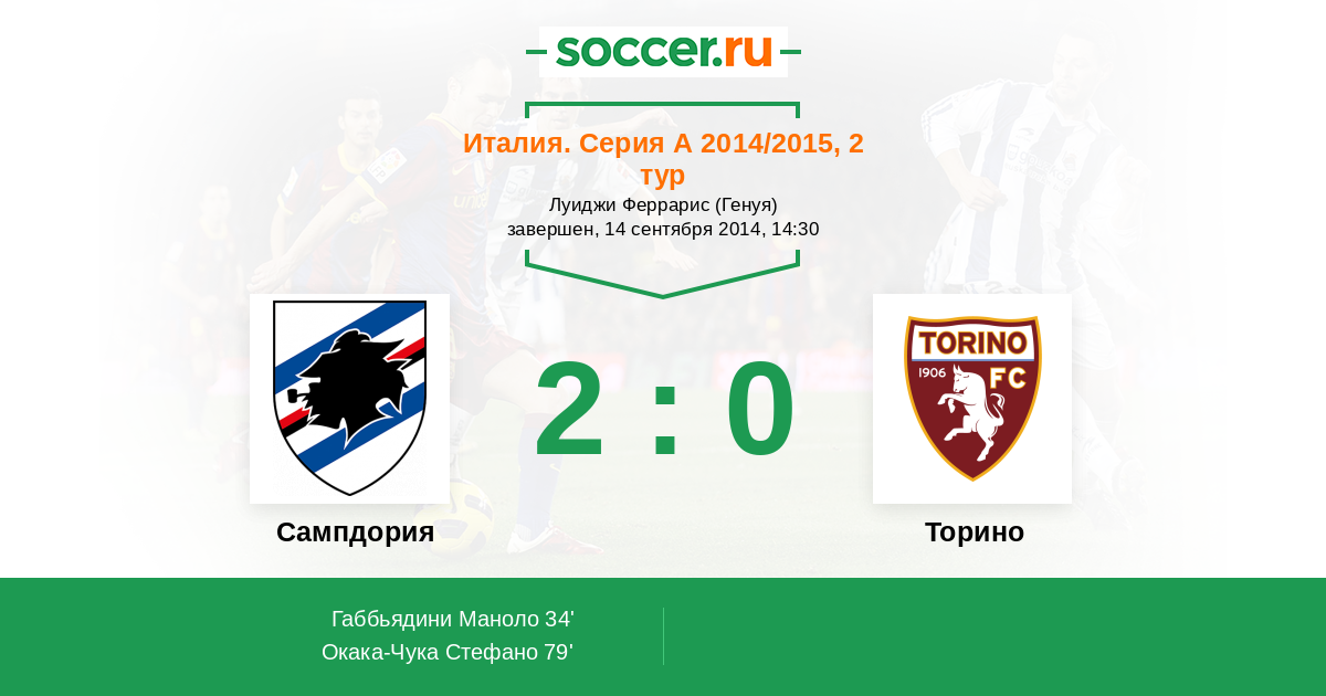 Протокол матча Сампдория против Торино